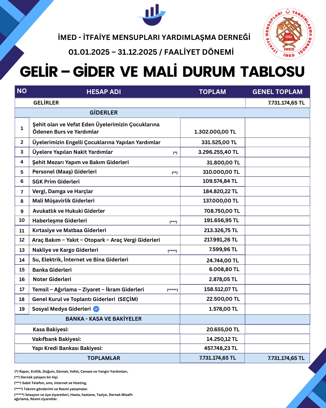 2025 yılına ait finansal performans, bütçe, gelir-gider ve mali durum tablomuz kamuoyunun ve...