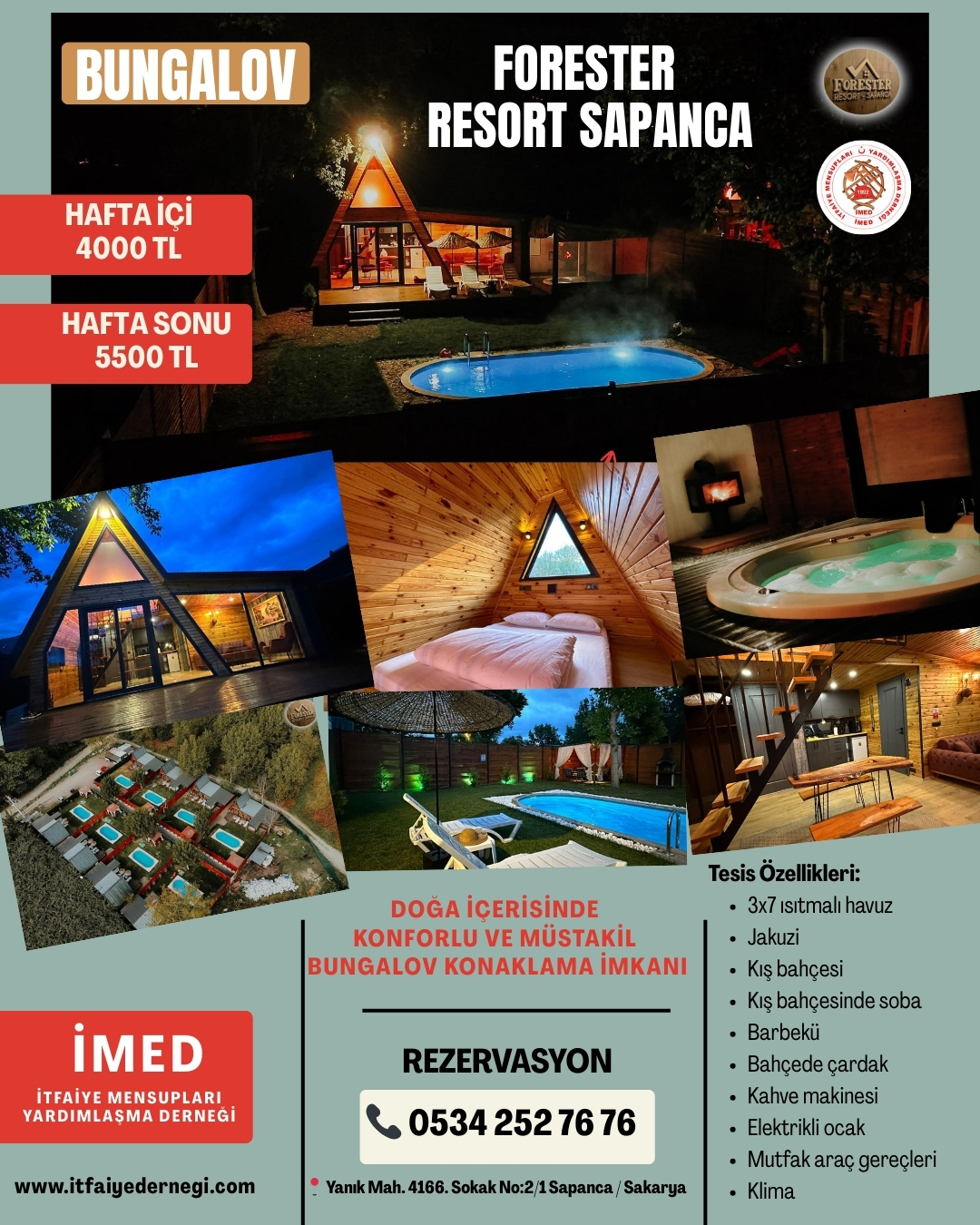 Bungalov Forester Resort sapanca ile İMED derneğimiz arasında indirimli konaklama anlaşması yapılmıştır. Anlaşma kapsamında; üyelerimiz ve 1. Derece yakınları özel indirimli fiyatlarla konaklama...